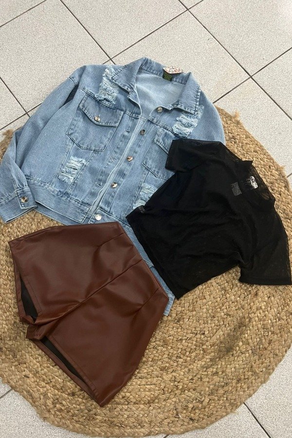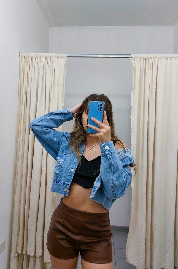 Campera de jean mom con roturas. solo disponible en color celeste talle XL y XXL
