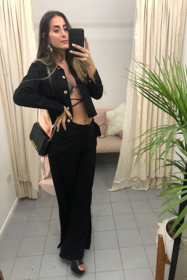 Pantalon palazo de fibrana con tajo y cinto incluido. solo disponible en color negro talle M