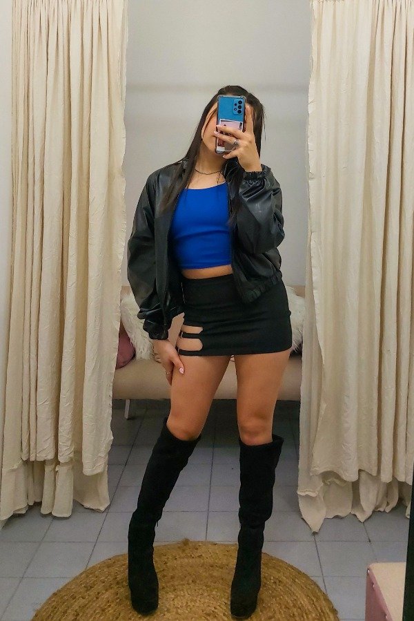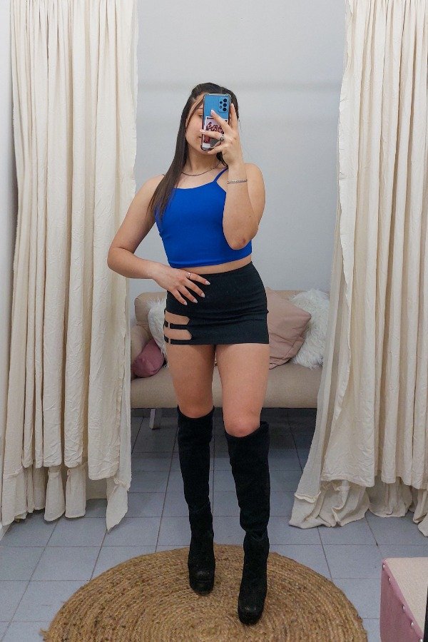pollera mini de gabardina con 2 argollitas. disponible en color blanco o negro talle S