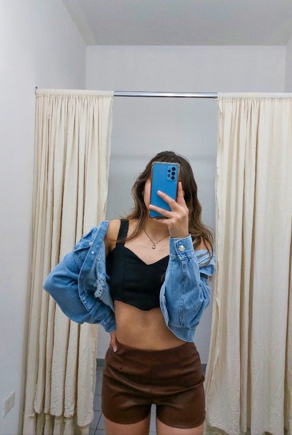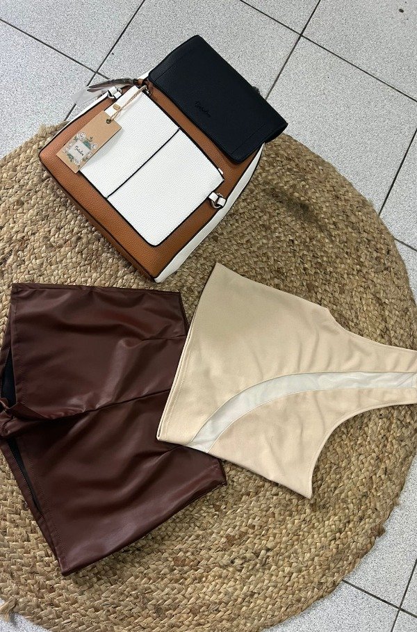 Short engomado recto sin botones y con cierre al costado. solo disponible en marron talle 38