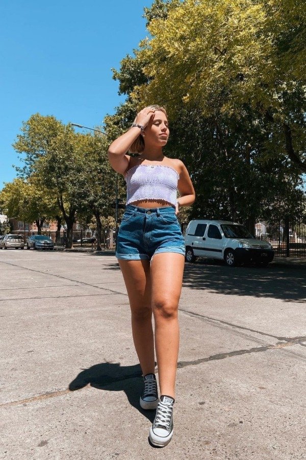 Short de jean con ruedo y roturas. disponible en color azul talle 42